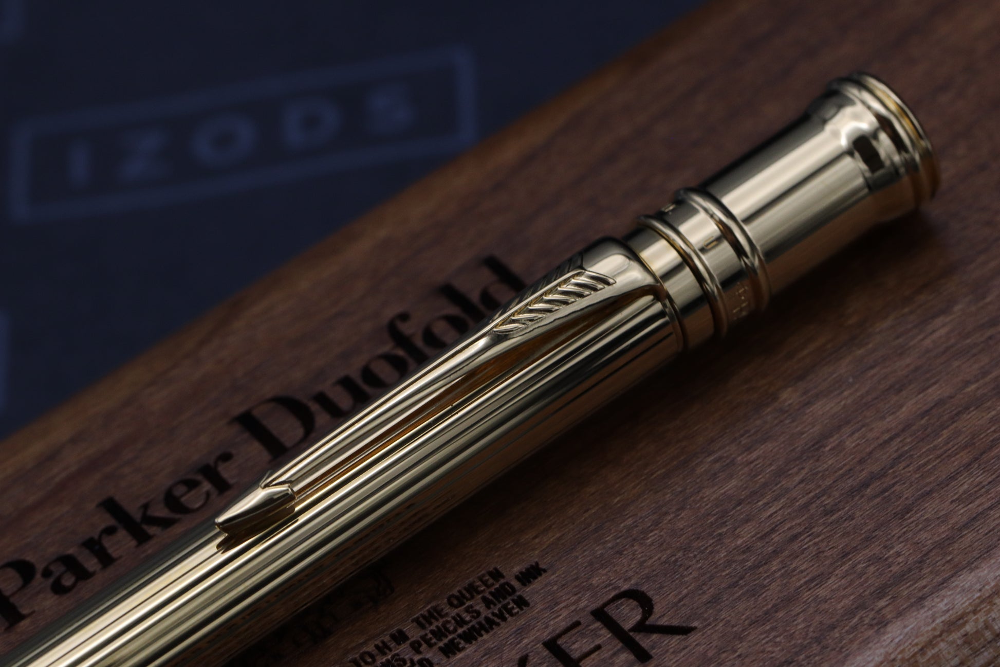 Thanks very much for looking at our listing for this Parker Duofold Godron Gold Ballpoint Pen, which comes with a wooden Parker presentation box (including outer). The pen has barely been used and is presented in wonderful condition. The barrel code of U dates this as a Q4 1991 pen, so right at the beginning of the Godron production.