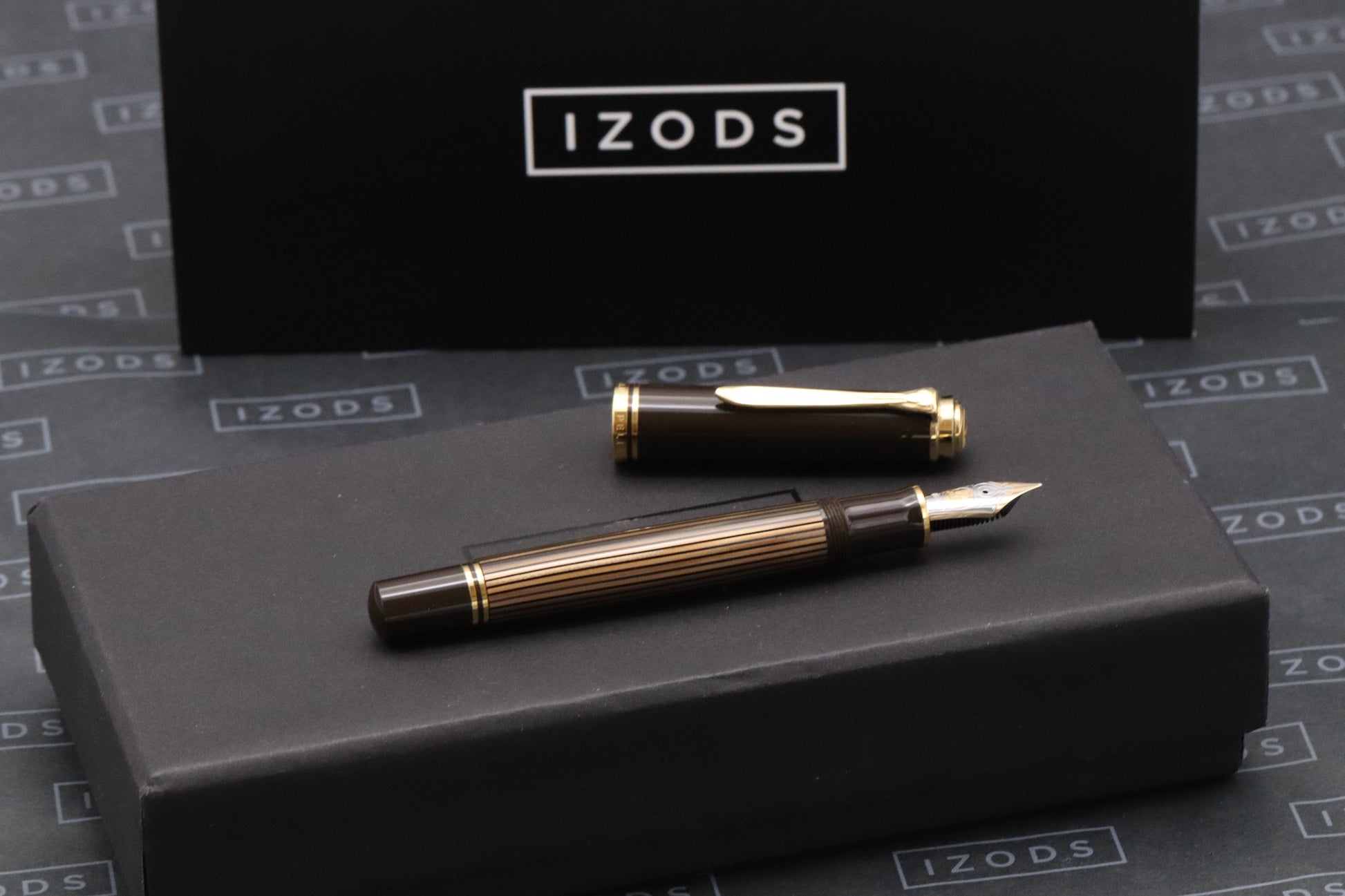 Thanks very much for looking at our listing for this Pelikan Souveran M800 Brown Black Special Edition Fountain Pen, which comes with an IZODS presentation box. The pen has been lightly used and is presented in fantastic condition.