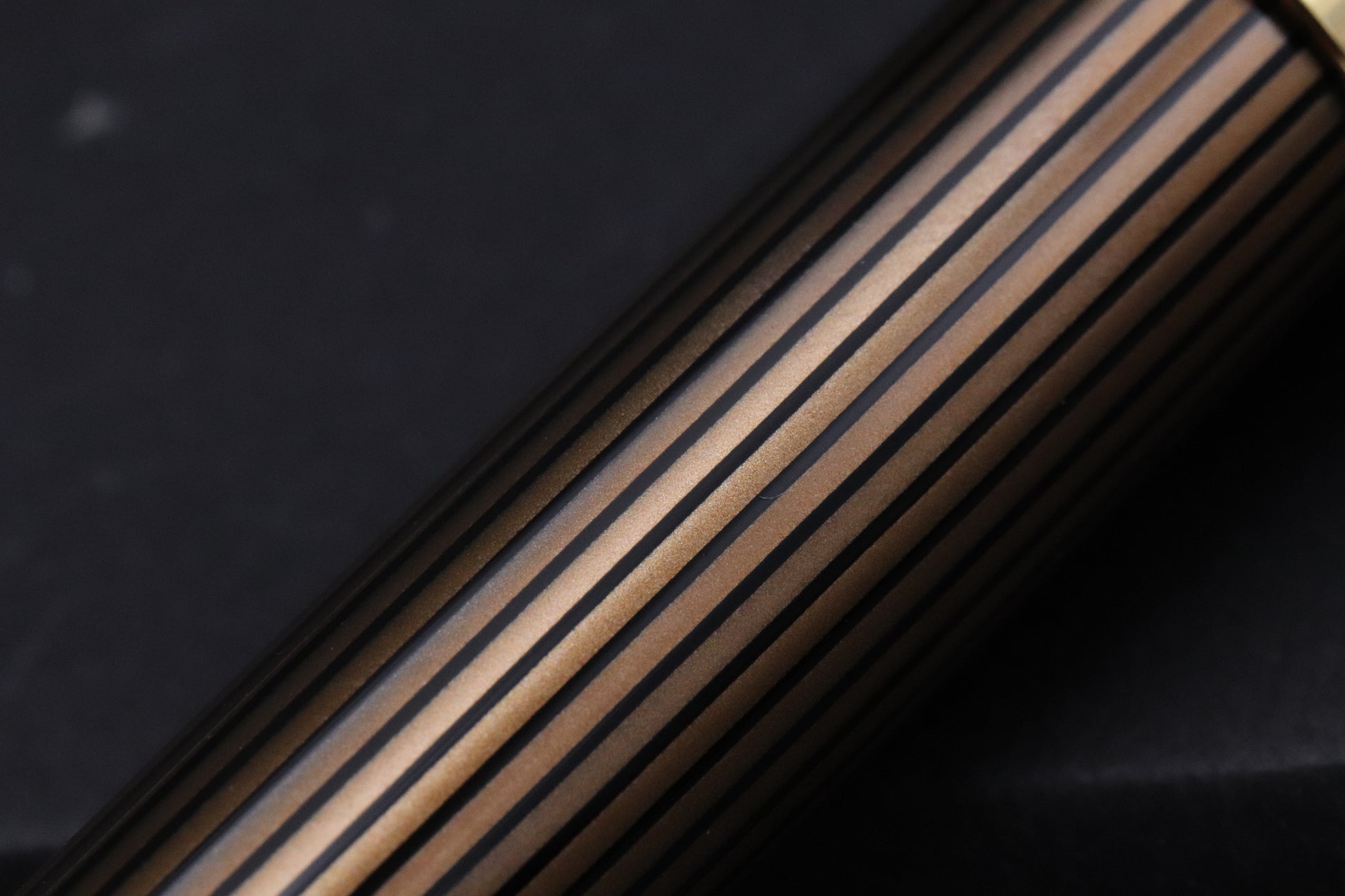 Released as a special edition in 2019, the cap, section and cone are crafted from a deep brown resin. The star of the show is the delightful brown and black striated barrel. The trim is gold-plated.