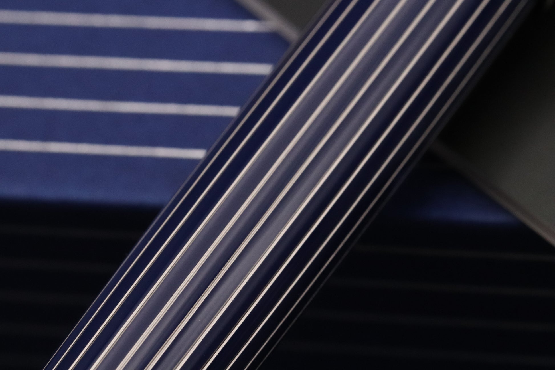 Following on from the original M815, comes this new blue version of the Metal Striped. The barrel features palladium-plated brass stripes, which works perfectly with the vibrant blue resin. The trim is rhodium-plated.